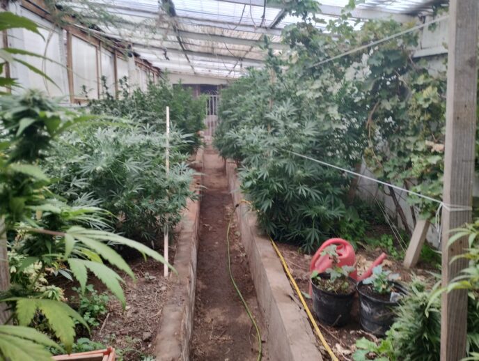 Con las pruebas reunidas el juzgado interventor dispuso tres allanamientos en calle Ingeniero Pórtela, Osvaldo Bayer y Capitan Onetto, en está última casa efectivamente se encontró un invernadero de unos 40 mts cuadrados acondicionado para el cultivo de más de 20 plantas de marihuana de grandes dimensiones, poseyendo una gran variedad de razas de cannabis, como así también cogollos, armas de fuego, dinero en efectivo, balanzas de precisión, teléfonos celulares y drogas prepara para su comercialización en pequeñas dosis.
