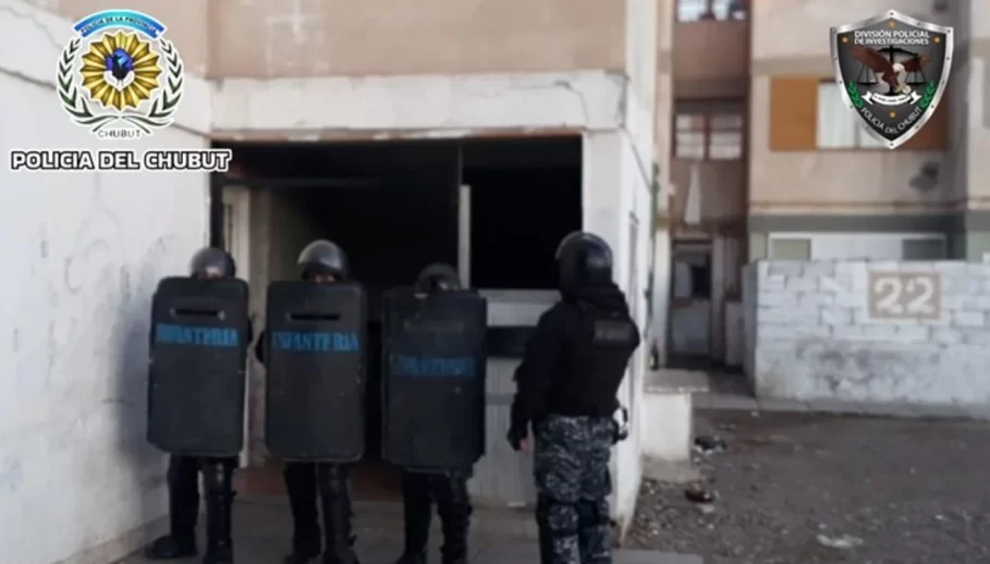 La investigación es llevada adelante por la fiscal Dra. Laura Barrios y el fiscal general Dr. Fernando Cheuqueman, del Ministerio Público Fiscal de Rawson. En los procedimientos colaboraron efectivos de la Guardia de Infantería, la División Drogas Peligrosas y Leyes Especiales, la Comisaría de Rawson y personal de Policía Científica.