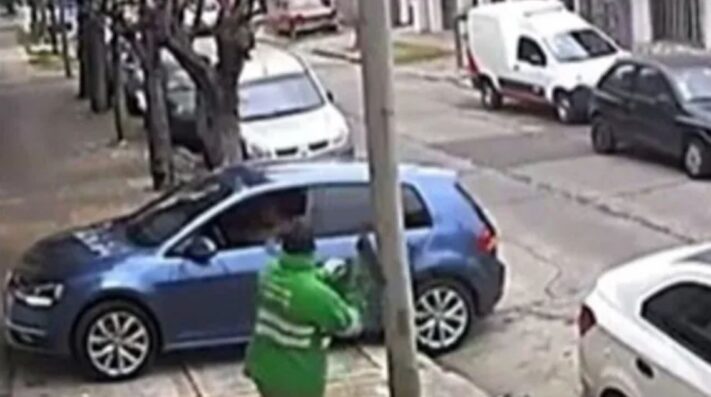 Una breve dificultad del delincuente, que se sentó del lado del conductor para arrancar el auto, le dio el tiempo suficiente al barrendero, vestido con campera verde y pantalón gris, para llegar a la escena con su escoba en alto. En ese momento, Messa golpeó a los asaltantes con el elemento de limpieza hasta que resolvieron escapar corriendo.