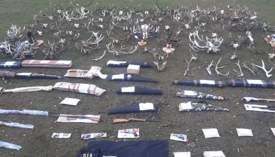 Los procedimientos efectuados incluyeron 20 allanamientos a distintos domicilios y un comercio en los que se secuestraron unas 50 armas, 4.500 municiones de distintos calibre, cinco vehículos, 47 trofeos (de ciervos y jabalí), celulares, carne, embutidos, listado de ventas, cinco máquinas de recarga, seis freezers y una heladera con unos 1.500 kilos de ciervo, cuatro balanzas, linternas y aparejos, entre otros elementos.