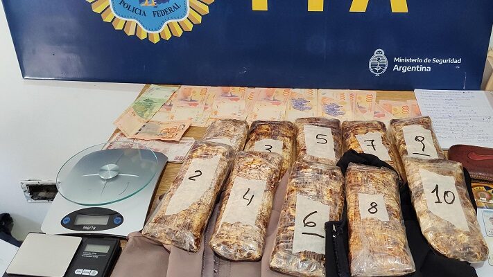 En otras de las viviendas allanadas en Villa Celina se detuvo a otra persona de nacionalidad boliviana, de unos 55 años quien cumplía la función de “mula”, la cual se encontraba presta a viajar a esta zona patagónica, en esa vivienda efectivos federales incautaron alrededor de 3 kilos de cocaína, los cuales se encontraban distribuidos en paquetes acondicionados en prendas de vestir, a su vez los paquetes se hallaban recubiertos con una sustancia grasosa como distractor para evitar en el trasladado hacia esta zona patagónica su detección por parte de los perros detectores de narcóticos que cuenta las fuerzas policiales en los controles de ruta y terminales de ómnibus.