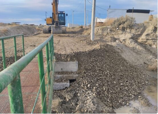 La Municipalidad de Comodoro Rivadavia realizó la tareas de colocación del puente peatonal en barrio La Cantera de Km 8. El puente había sido derribado con la crecida del riachuelo de efluentes cloacales en la tormenta. El puente es provisorio mientras se licita un puente más grande en el lugar.