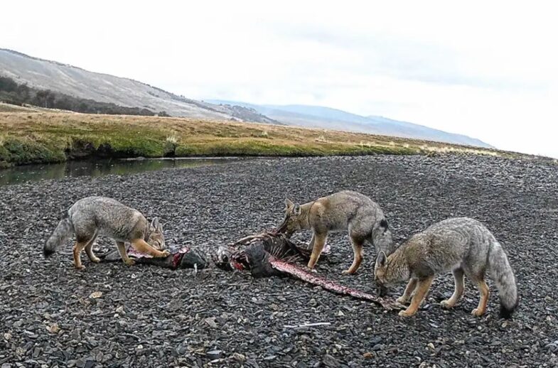 La invasión del salmón Chinook comenzó hace unos 45 años y su impacto principal se da directamente en los ecosistemas fluviales. Este proceso comienza con la alteración de las condiciones del agua a través de la excreción de productos metabólicos y la deposición de huevos. Sin embargo, el fenómeno más significativo ocurre tras el desove. Los salmones son especies semélparas: al igual que el trigo, invierten toda su energía en un único evento reproductivo, y mueren. Este ciclo biológico genera un despliegue masivo de biomasa: “Estamos trabajando junto con ONGs como la Fundación Anfibia, la Secretaría de Pesca de Santa Cruz y APN, con el apoyo de Patagonia CO y en algunos ríos donde realizamos censos con drones estimamos hasta 20 toneladas de carcasas en un sector muy pequeño del río”. Esta enorme cantidad de biomasa es aprovechada por la comunidad de carroñeros para alimentarse, los cuales fueron captados por cámaras trampa colocadas por Ciancio y colaboradores a lo largo del cauce del río para poder estudiar con precisión el comportamiento: “Para entender mejor cómo se alimentan los carroñeros, medimos la biomasa que consumen de cada carcasa pesándola luego de la visita de uno o varios individuos. Además, tomamos muestras de distintos tejidos para estimar el aporte en su dieta por parte de los salmones utilizando isótopos estables. Estos actúan como ‘etiquetas químicas’ que nos permiten distinguir si un nutriente proviene del mar (salmón) y qué fracción de la dieta representa. Nos permiten también rastrear el camino de los nutrientes, incluso cuando se diluyen en el agua y son integrados por los productores primarios, llegando finalmente a toda la trama trófica”, completa el investigador del Cenpat.