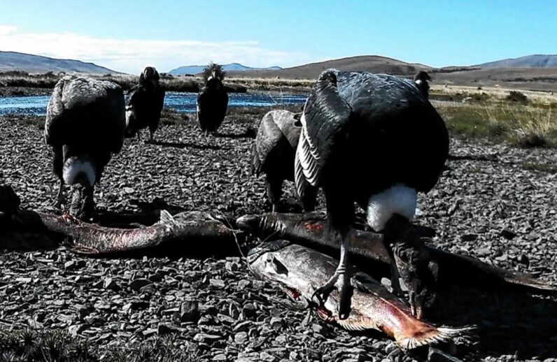 En la provincia de Santa Cruz, la presencia de este enorme pez ha alterado la alimentación de especies carroñeras como, cóndores, zorros, zorrinos, caracaras, caranchos, chimangos o águilas mora. Sorpresivamente, los investigadores se encontraron además con un hecho poco común: pumas cazando salmones vivos antes de concluir su ciclo y morir. “Desde 2003, observamos grandes cadáveres de salmón Chinook invasor dispersos a lo largo del valle del río Caterina, en el sur de la Patagonia. Este río se encuentra cerca del Campo de Hielo Patagónico Sur y fue la primera cuenca con drenaje al Atlántico invadida por esta especie . Estos restos de salmón, algunos depositados a cientos de metros del río, sugerían la presencia de un gran vertebrado que atacaba a peces vivos”, cuenta Javier Ciancio, investigador del Centro para el Estudio de los Sistemas Marinos (CESIMAR-CONICET). No fue hasta 2022 cuando un pescador identificó signos claros de un cadáver fresco en un sitio de caza de puma junto al río, y más tarde avistó pumas cazando salmones, convirtiéndose en la primera observación de esta interacción trófica.