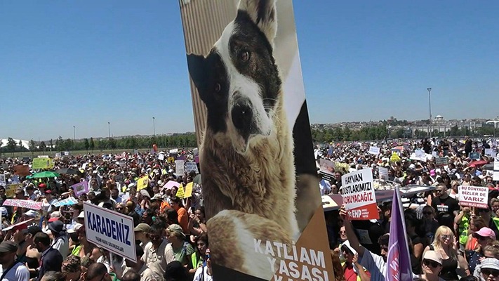 En Estambul durante las últimas semanas se han sucedido, casi a diario, importantes manifestaciones contra el proyecto de ley que permitiría el sacrificio masivo de perros callejeros.