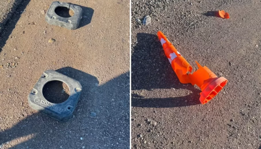 Tras ser demorado en el puesto de control, el conductor —identificado como R.J.C., de 48 años— fue notificado de la causa en su contra. Según consta en el parte oficial, se realizó una inspección ocular en el lugar del hecho donde se constataron los conos destruidos completamente desde su base.