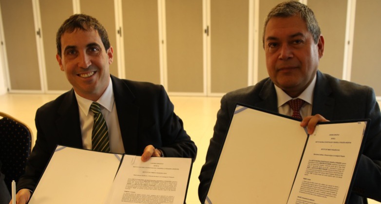 Con la presencia del director del INIDEP, Mag. Gonzalo Eduardo Bacigalupo, y del director ejecutivo del Instituto de Fomento Pesquero (IFOP) de Chile, Dr. Gonzalo Pereira Puchy, se formalizó la firma de dos nuevos convenios de colaboración técnica entre ambas instituciones, que vienen trabajando conjuntamente desde el año 2014.