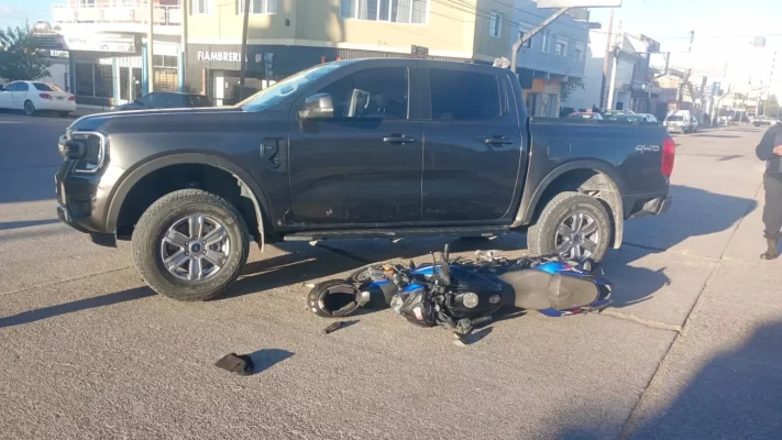 El siniestro ocurrió cuando la camioneta habría girado en dirección oeste, colisionando con la moto que circulaba en el mismo sentido. Personal médico auxilió al motociclista, mientras que la Fiscalía imputó al conductor por lesiones culposas.