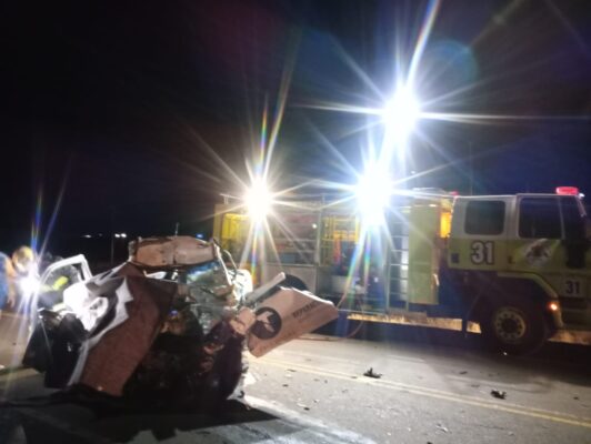 Ayer a las 20:50 en el Km 6 de la ruta 26, dos vehículos una Fiat Strada y un camión Scannia chocaron de frente por razones que se tratan de establecer. Los dos ocupantes de la camioneta que estaba al servicio de una empresa de refrigeración, David Andrada y Agustín Andrada Cruz, padre e hijo, perdieron la vida tras el violento choque.