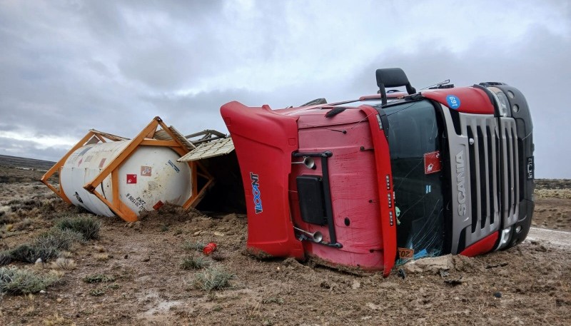 En horas de la tarde de este domingo, se registró un siniestro vial sobre Ruta Nacional N°3, a 10 kilómetros al sur de la localidad de Puerto San Julián, donde un camión de transporte de sustancias peligrosas protagonizó un vuelco sin obstruir la calzada.