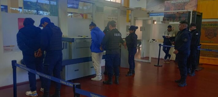 Según informó la Policía, los hombres y la mujer bajaron de un colectivo de larga distancia y cuando intentaron pasar el escaner de la Terminal de Ómnibus de Comodoro Rivadavia terminaron detenidos.